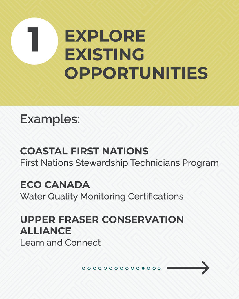Experience in fieldwork, habitat monitoring, or ecosystem assessment is common, often gained through volunteer, internship or employment opportunities with conservation groups, environmental agencies or consulting firms. Some are also trained through specialized training programs (e.g. Environmental Farm Plan Program).
